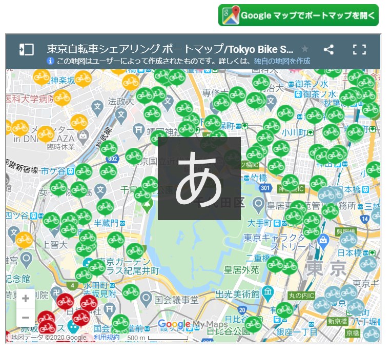 東京のシェアサイクルのアプリを使う時、アプリ独自の地図で自転車のポートがどこにあるかを示しているが、その地図には、自分がどっちを向いているかわかる機能がないとき